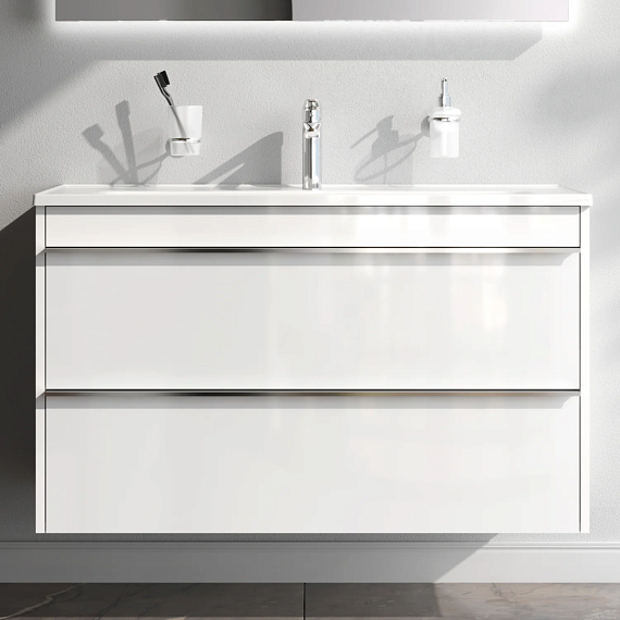 DESIGN QUALITÄT: Die Kollektion Hit verkörpert Premium-Design im erschwinglichen Preissegment. Der wandmontierte Waschtischunterschrank 100 cm überzeugt durch seine klare Linienführung, glänzende Fronten und elegante Metallgriffe. Ideal für kleine und große Badezimmer.