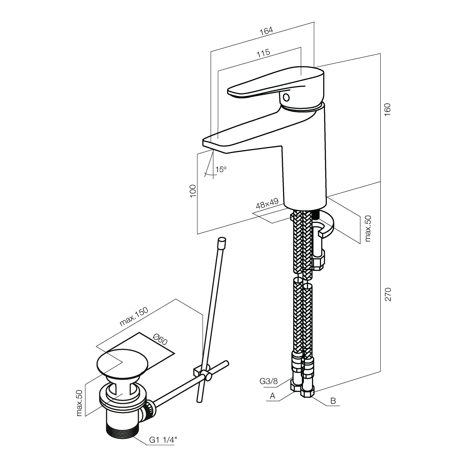 AM.PM Inspire F508210C basin mixer. - Color: Chrome - Material: Brass - Control: Single-lever - Mechanism: SoftMotion 35 mm ceramic cartridge - Spout: Fixed - Inlet standard: G 3/8 flexible - Pop-up waste: G 1 1/4 (push-open) - Mounting: Deck-mounted