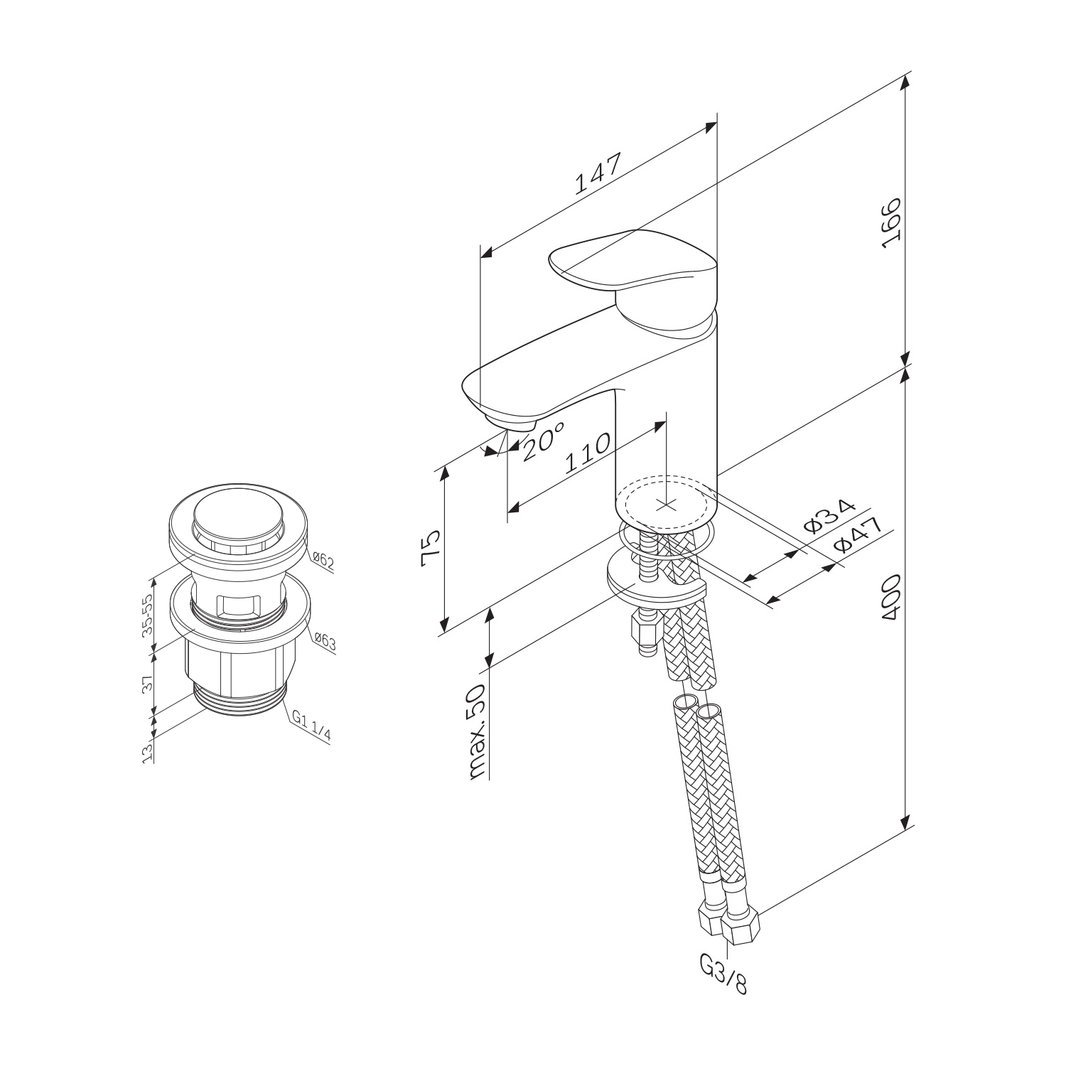 Washbasin mixer (faucet) AM.PM Like FLA82100 Single lever with bottom valve, Chrom