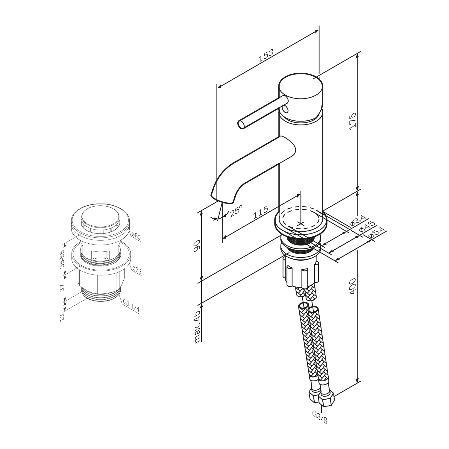 Washbasin mixer (faucet) AM.PM Spike FPA82100 Single lever with bottom valve, Chrom