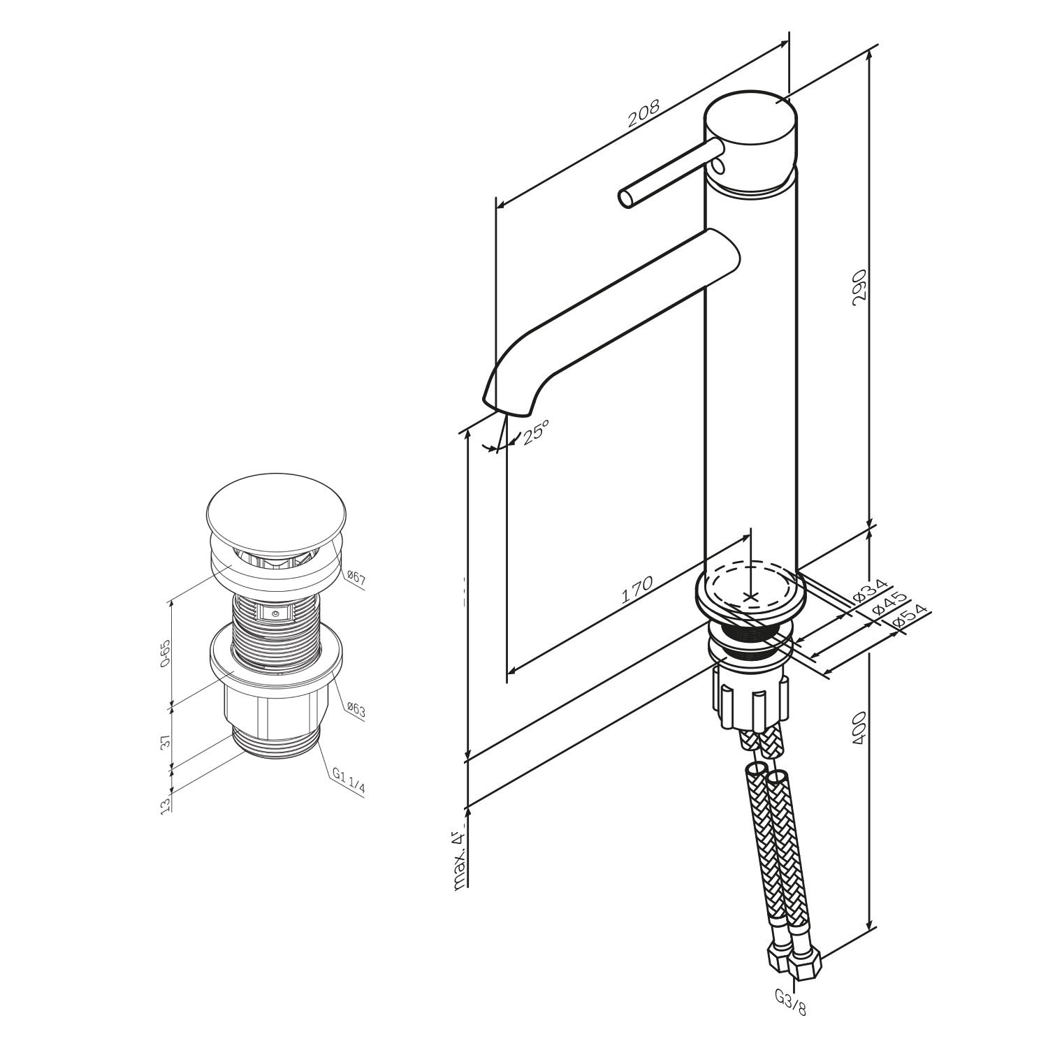 Washbasin mixer (faucet) AM.PM Spike FPA92200 Single lever with bottom valve, Chrom