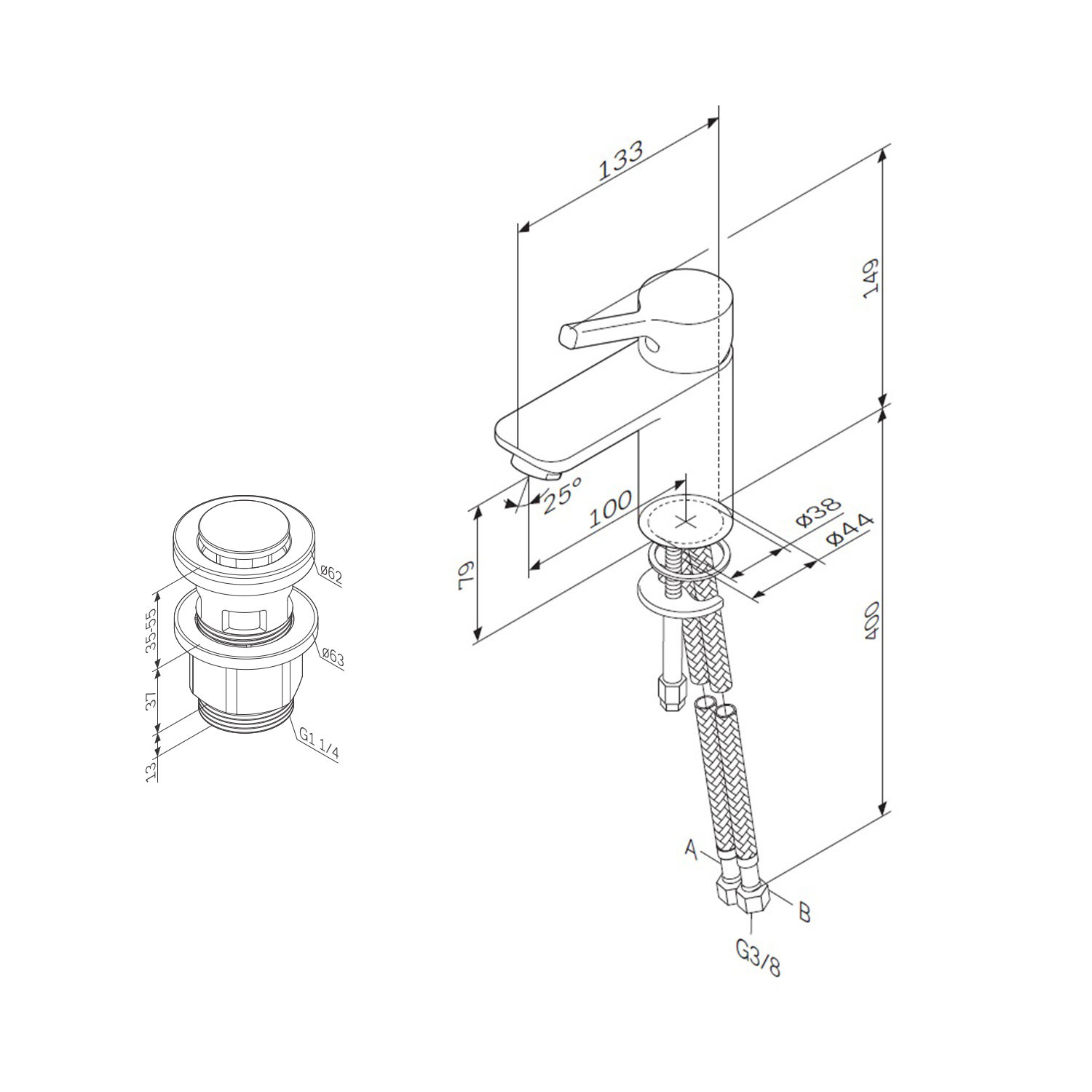 Washbasin mixer (faucet) AM.PM X-Joy S FXB82100 Single lever with bottom valve, Chrom