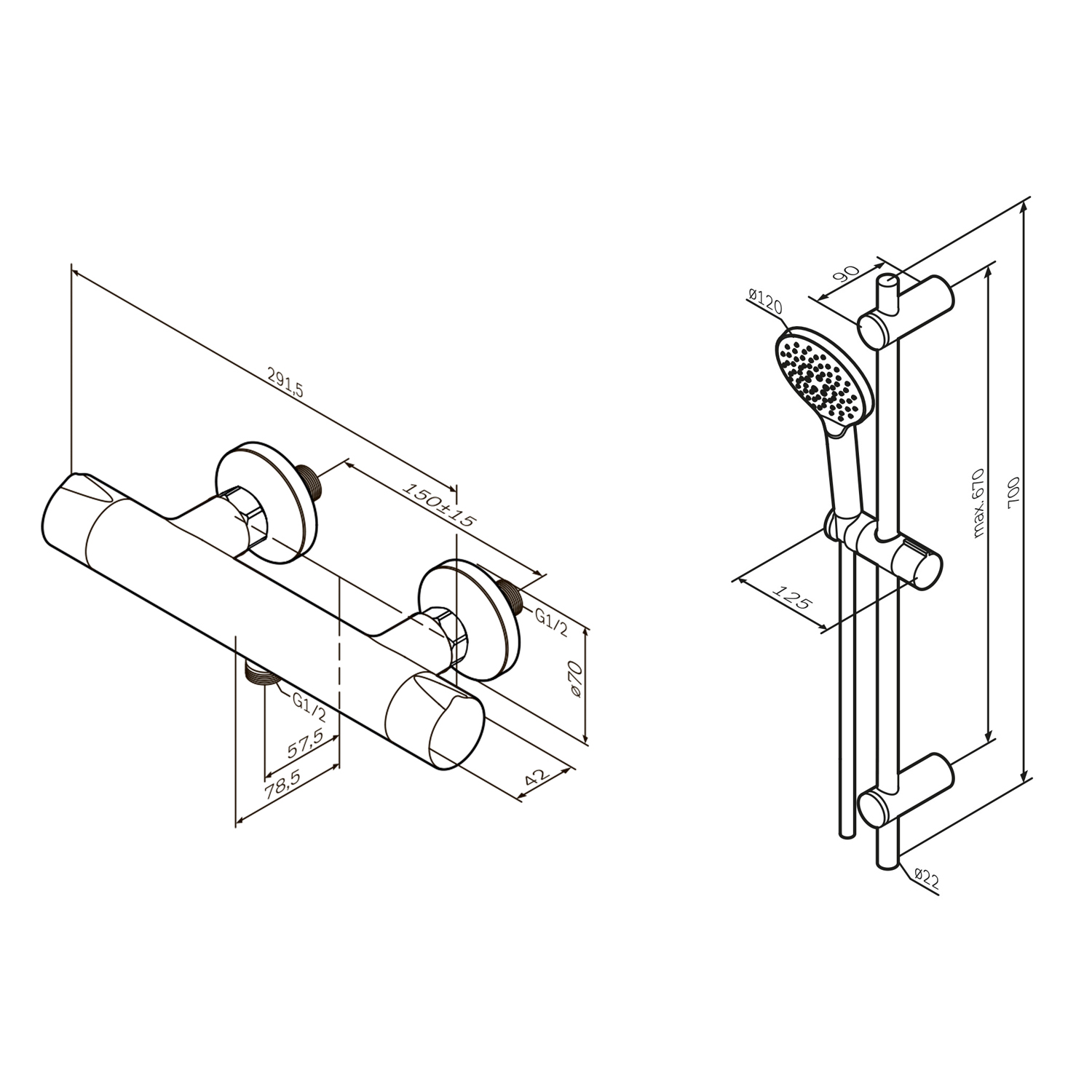 The F408LA46 Like faucet set combines an FLA40000 thermostatic shower mixer with an F01LA000 brass shower kit. High quality ensures lasting reliability, stability, and ease of use. Give your bathroom a modern look with the convenience of the F408LA46 Like faucet set. - FLA40000 Thermostatic shower mixer: Material: Brass; Color: Chrome; Height: 65 mm; Width: 277 mm; Depth: 100 mm; Gross weight: 2.2 kg - F01LA000 Shower kit: Material: Stainless steel, ABS plastic; Color: Chrome; Height: 700 mm; Width: 125 mm; Depth: 130 mm; Gross weight: 0.89 kg