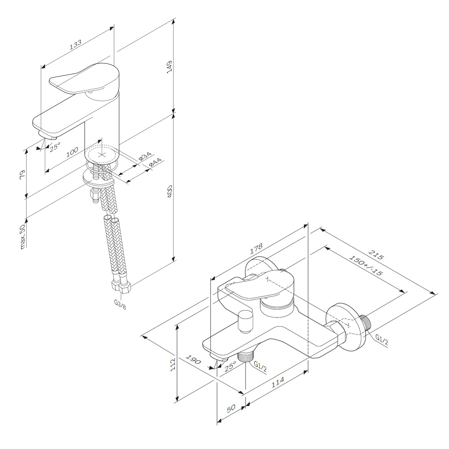 The F428XA39 X-Joy faucet set consists of an FXA02122 single-lever basin mixer and an FXA10022 bath/shower mixer, both made from solid brass. Robust and durable, they deliver unparalleled performance for years to come. This set offers high-quality bathroom faucets with timeless design and first-class quality. - FXA02122 Single-lever basin mixer: Material: Brass; Color: Black; Height: 149 mm; Width: 40 mm; Depth: 133 mm; Gross weight: 1.16 kg - FXA10022 Bath/shower mixer: Material: Brass; Color: Black; Height: 112 mm; Width: 215 mm; Depth: 178 mm; Gross weight: 2.0 kg