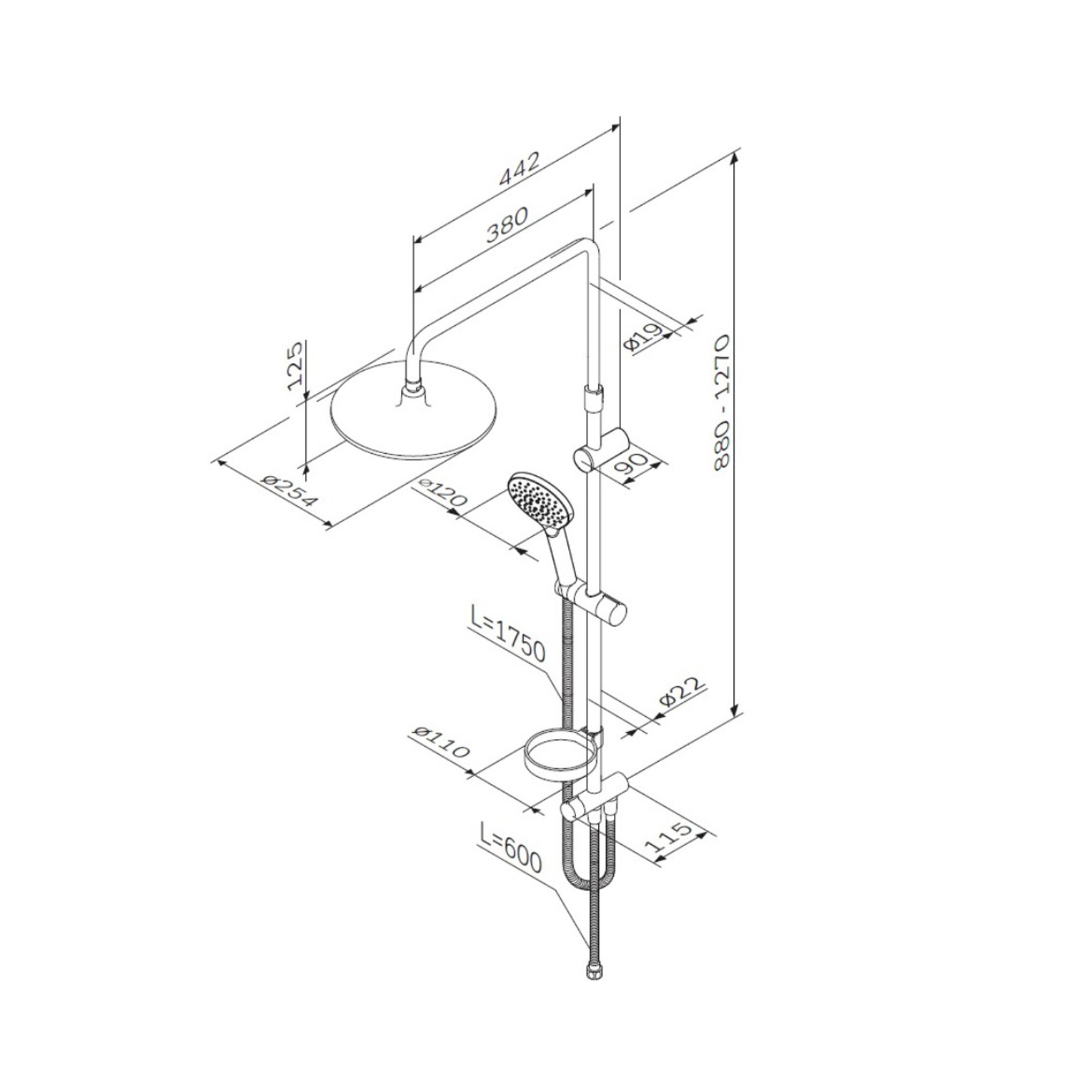 Design at its finest: every detail of the ShowerSpot – from proportions to nozzle patterns – is part of a single design concept in the highly trendy Dynamic Organic style. Thoughtful details for comfort: the telescopic swivel rail adjusts from 800 mm to 1200 mm, with a ball joint for the overhead shower. Premium sizes: enlarged shower heads (overhead 250 mm, hand 110 mm) deliver a rain shower experience, while the 1750 mm hose provides freedom. Rub & Clean keeps nozzles limescale-free. Three hand shower modes: Spray, EnerJet, Spray + Massage.