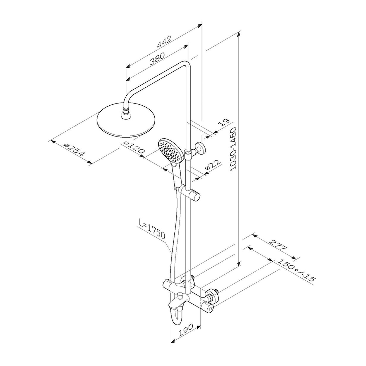 Every detail of the shower system – from the proportions of the hand and overhead showers to the spray pattern – follows a unified concept in the trendy Dynamic Organic style. Thoughtful details for comfort: the telescopic swivel rail is adjustable from 1030 mm to 1460 mm, and the ball joint allows angle adjustment. Premium sizes in the mass segment: the enlarged shower heads (overhead 220 mm, hand 110 mm) let you enjoy a rain shower experience even in a standard bathroom, while the 1750 mm hose offers freedom of movement. The Rub & Clean function keeps nozzles effortlessly free of limescale. Three hand shower modes: Spray, EnerJet, Spray + Massage.