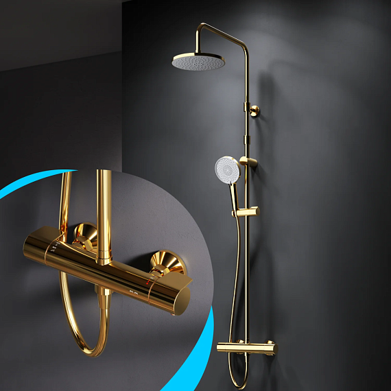 Sprchový systém AM.PM X-Joy F07XA499 s termostatickou sprchovou batériou, Zlatá