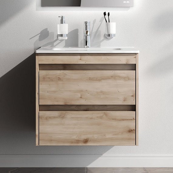 Skrinka s umývadlom 60 AM.PM Spike MPA-FHX0602HF-WCC0602WG závesná, 2 zásuvky, svetlý dub