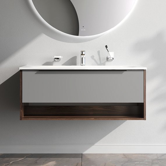 Waschtischunterschrank mit Waschbecken 100 AM.PM Flash MNAFHX1001GM Wandhängend, 1 Schublade + Freifläche, Graphit Matt