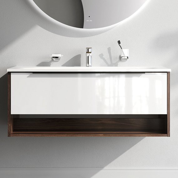 Waschtischunterschrank mit Waschbecken 100 AM.PM Flash MNAFHX1001WG Wandhängend, 1 Schublade + Freifläche, Weiß Hochglanz